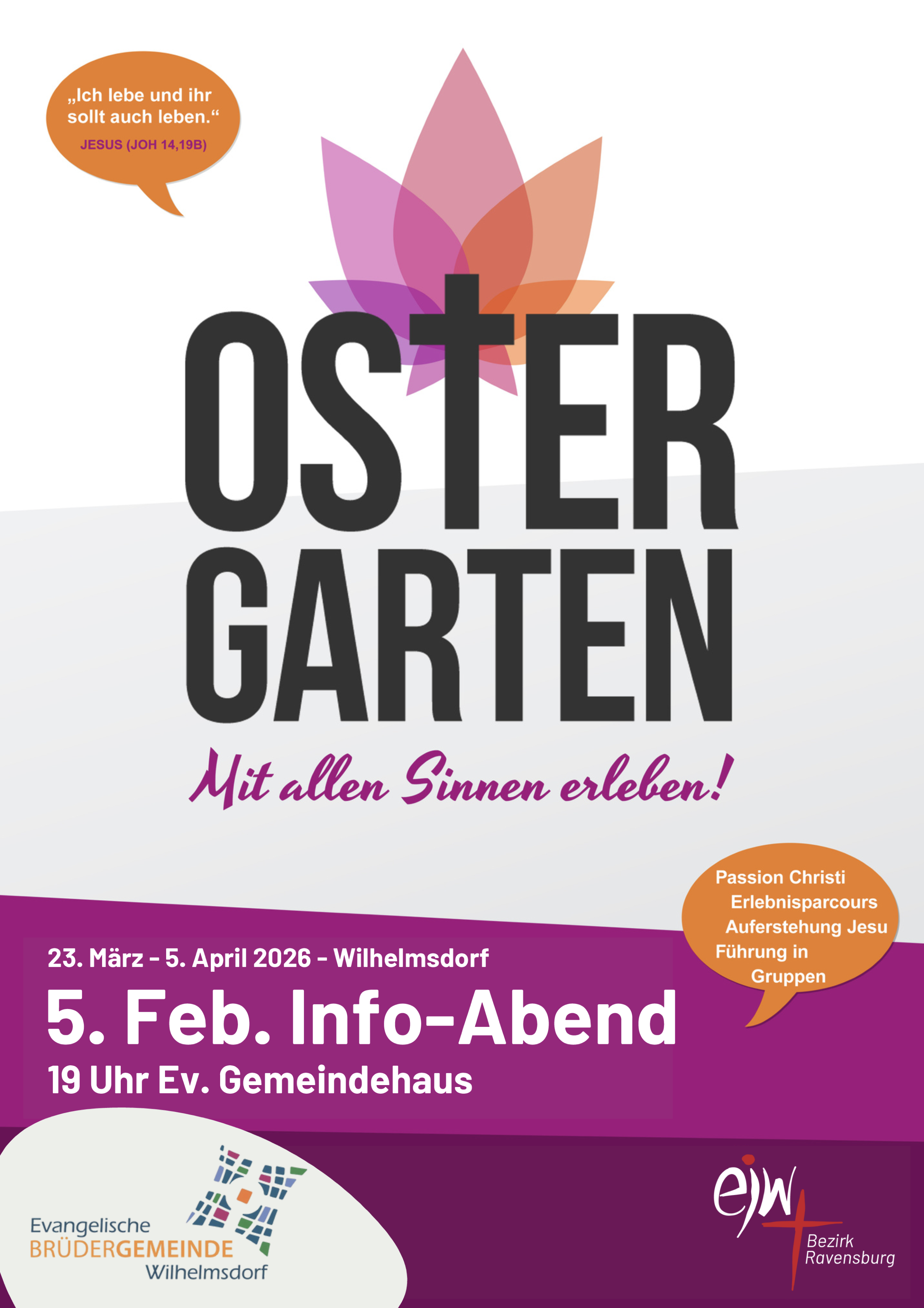 Ostergarten zu Gast in Wilhelmsdorf. Ostern einmal anders erleben, nämlich fühlen, schmecken, hören sehen - das verspricht der Ostergarten, der 2026 in der Ev. Büdergemeinde Wilhelmsdorf zu Gast ist.